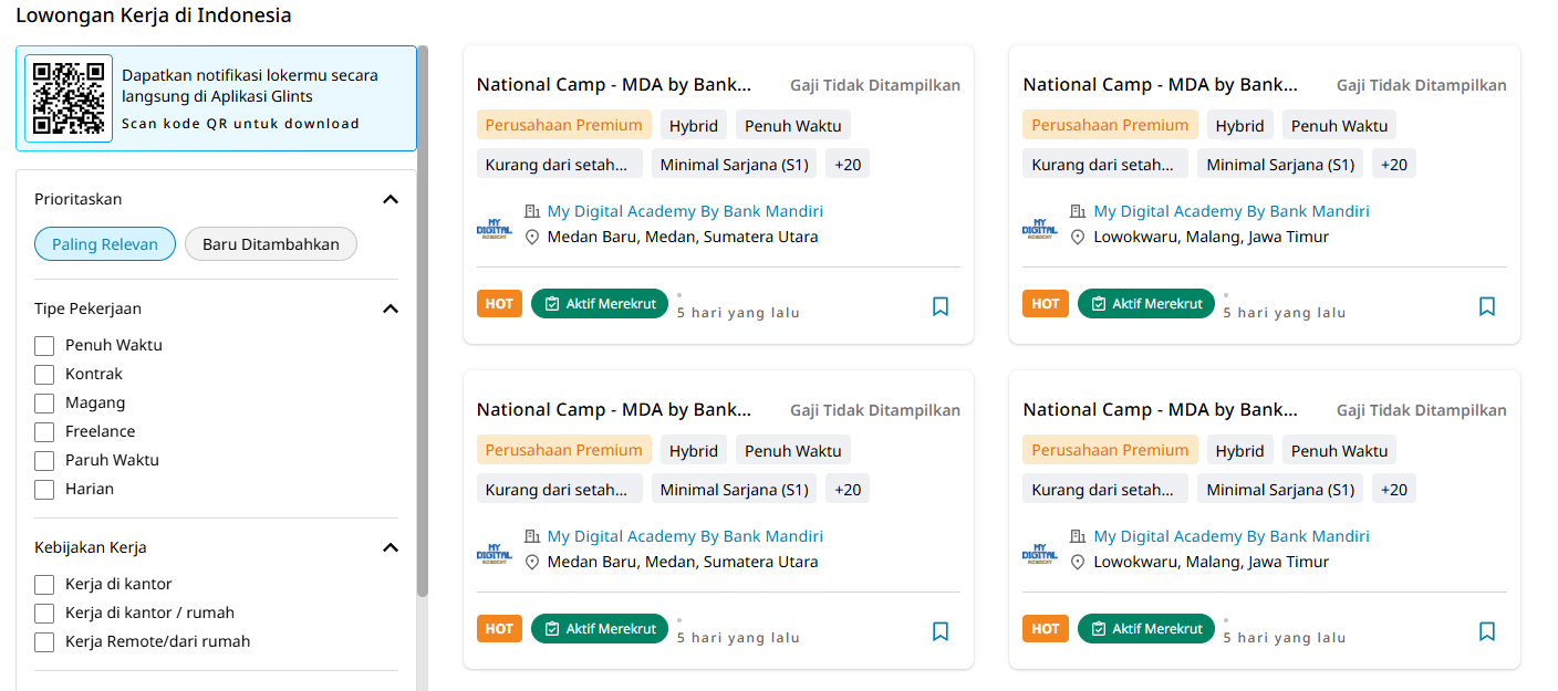 Situs legendaris ini masih jadi favorit banyak pencari kerja. Di sini kamu bisa filter berdasarkan lokasi, industri, hingga gaji.